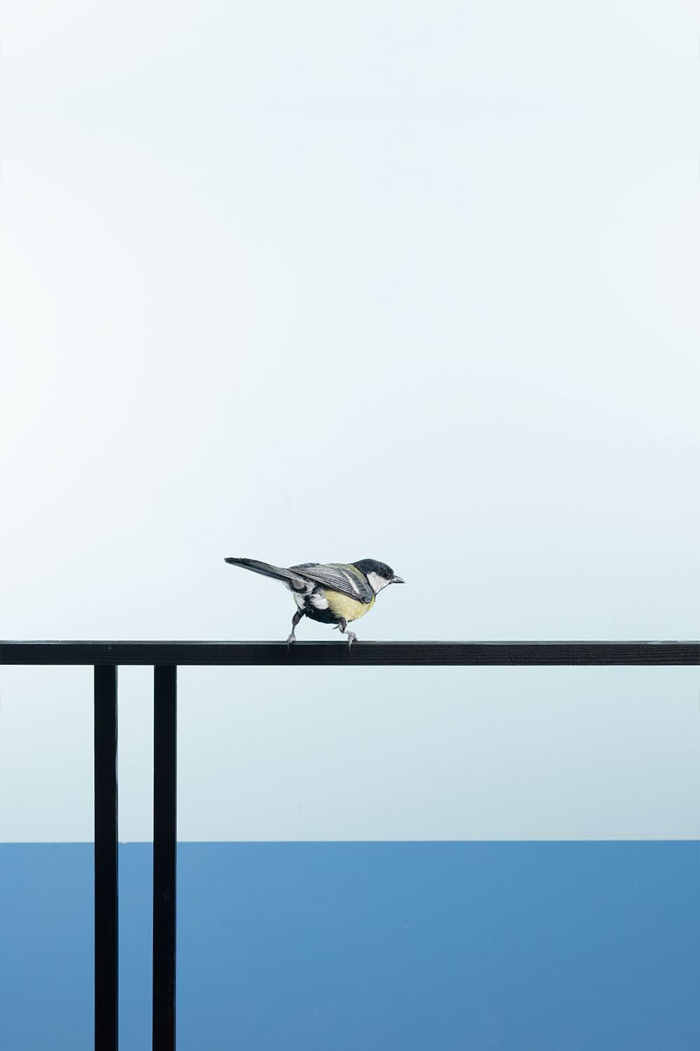 De afgelopen acht jaar fotografeer ik voornamelijk vogels in mijn achtertuin. In mijn studio maak ik opstellingen en maquettes die ik vervolgens in de tuin plaats, waar ik wormen gebruik om tuinvogels naar mijn opstellingen te lokken. /// The last eight years, I’ve mainly been photographing birds in my backyard. In my studio, I create setups and maquettes, which I then place in the garden, where I use worms to attract garden birds.