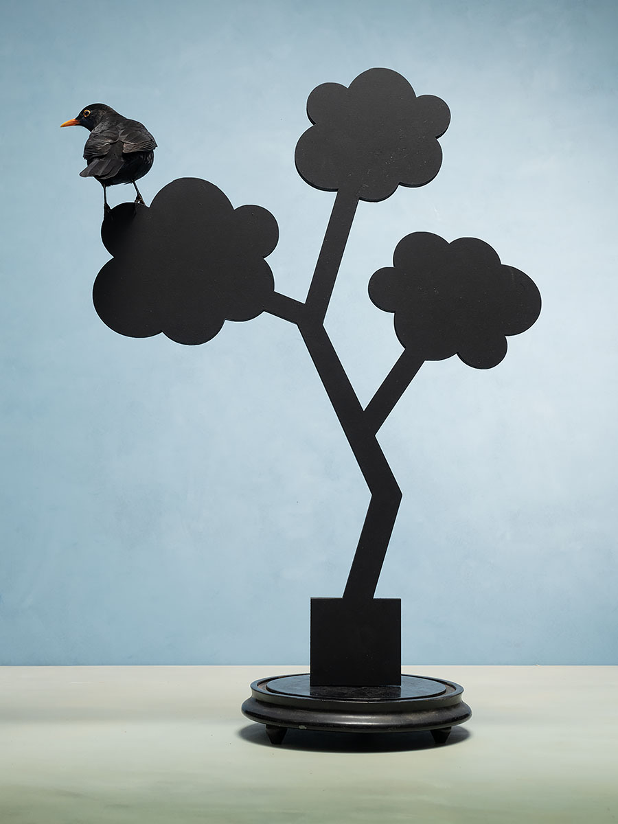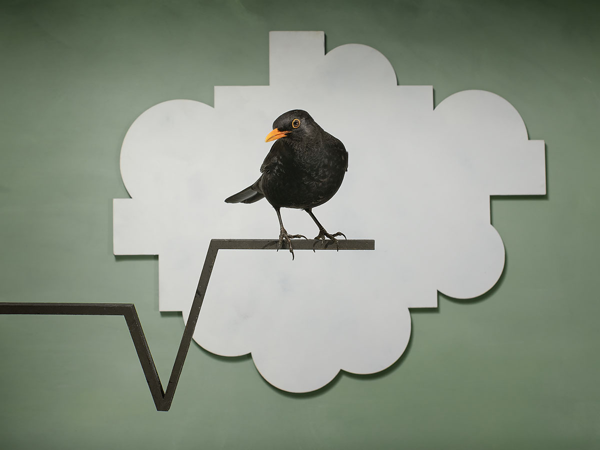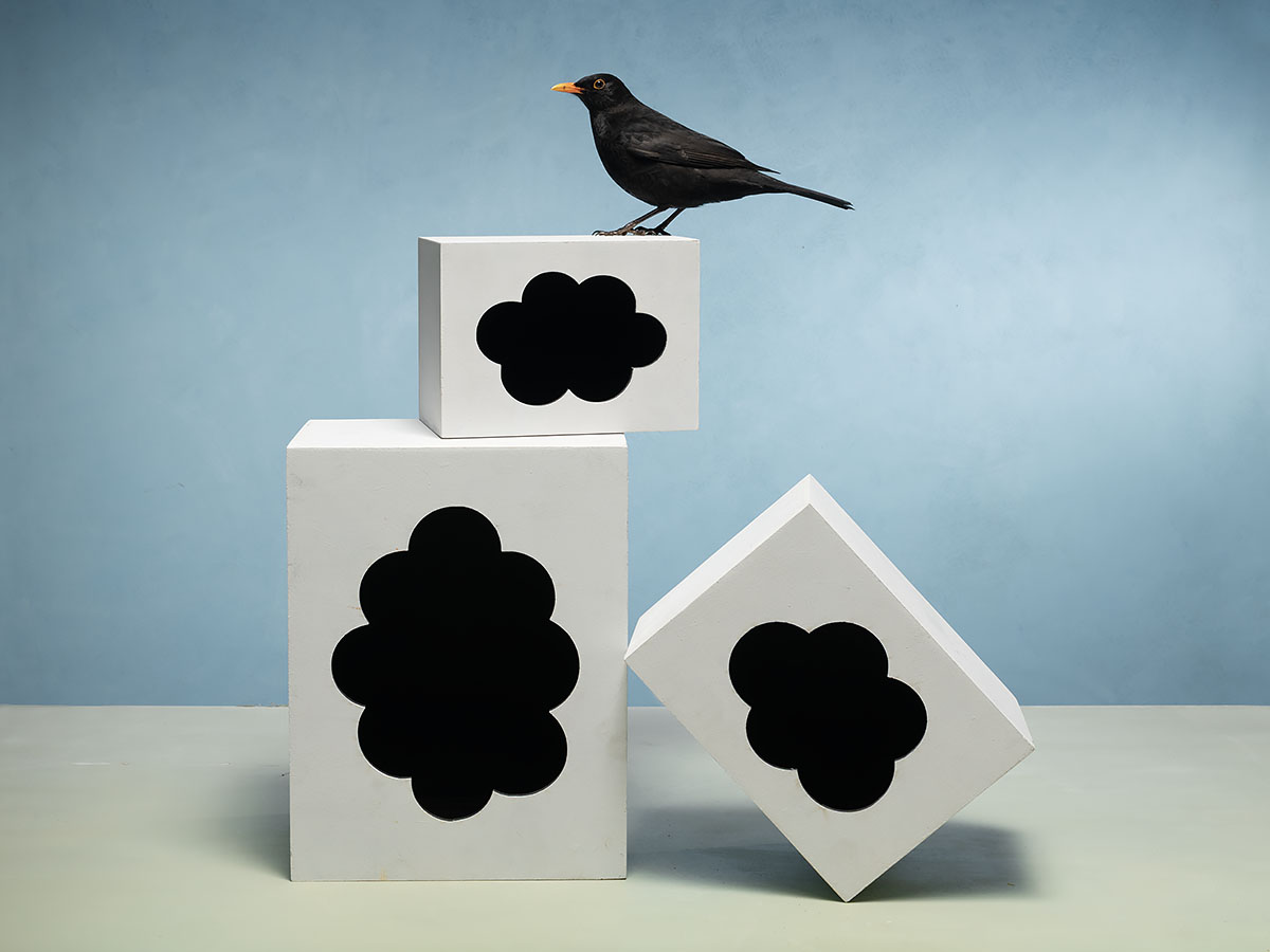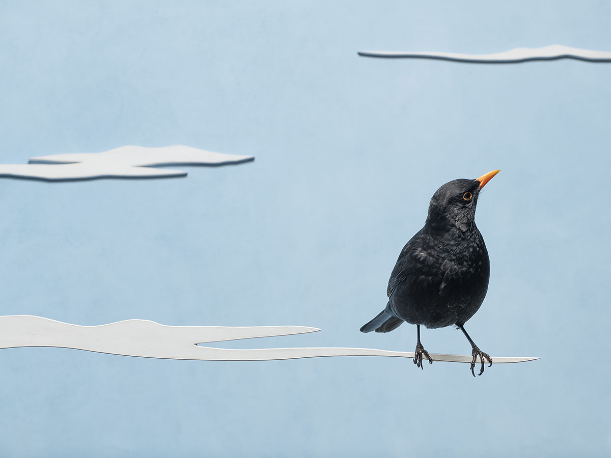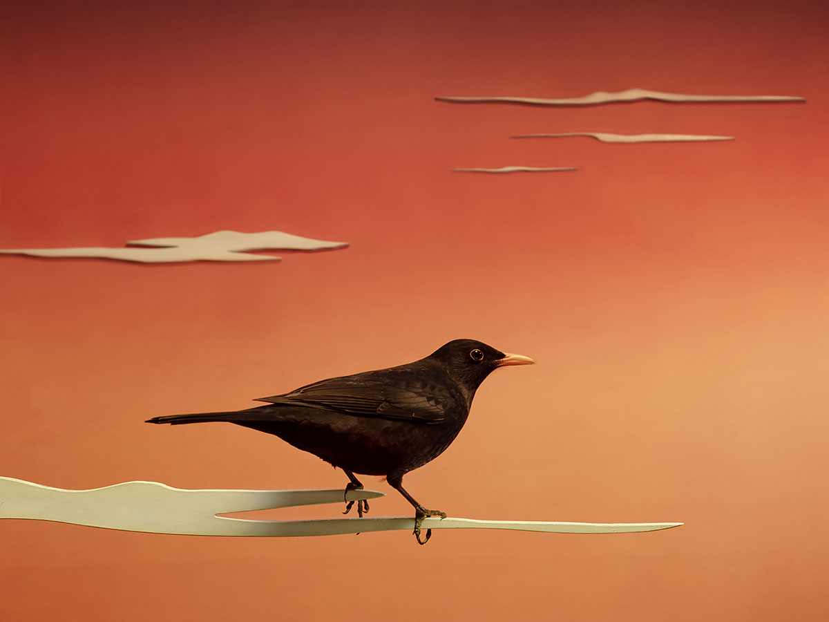 In mijn meest recente -ongoing- serie ligt de focus op de zwarte vogel. Gedurende de acht jaar dat ik vogels fotografeer in mijn achtertuin zijn de merels en de kraaien nog niet echt aan de beurt geweest. Ze zijn moeilijk te lokken naar de opstellingen. Heel af en toe lukte het om een merel in mijn opstellingen te krijgen. Maar vanaf december 2025 is er een merel die blijft maar komen. Het mannetje is opvallend zwart. Het is een fluweelachtig zwart dat soms neigt naar het absolute zwart. De titel Variations on a Black Bird is een hommage aan het zwart, de merel en hopelijk ooit een kraai.